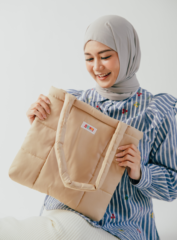 Kuantitas Tote Bag Sporty Cream Korean Style Puffy Sporty Oenni